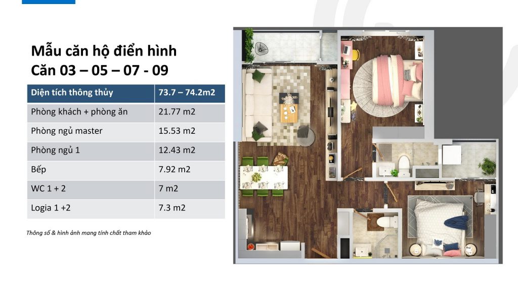 - Giá bán căn hộ 2 ngủ 74m2: Từ 3.7 tỷ