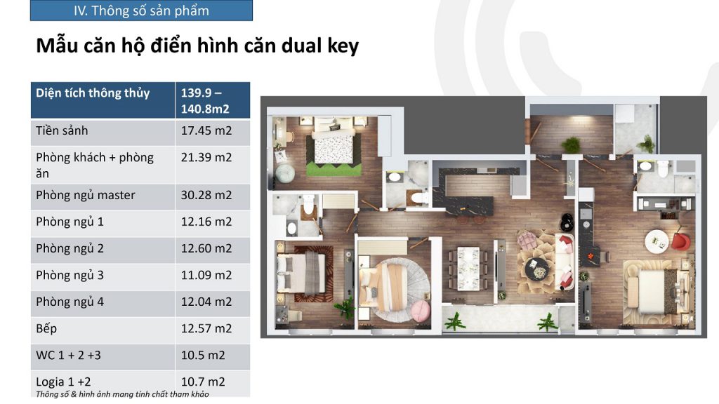 - Giá bán căn hộ dual key 140m2: Từ 6.8 tỷ